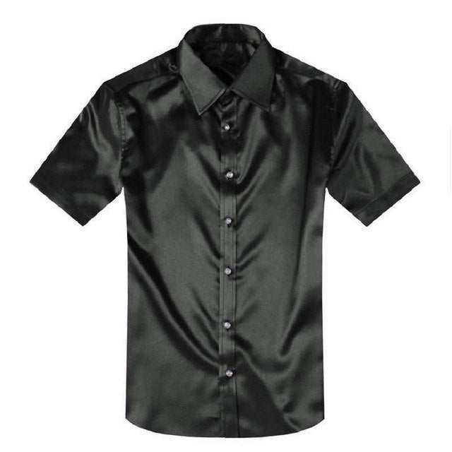 Mens Silk Shirt Short Sleeve Turn Down Collar Solid Slim Fit Dress Shirts Men 2018 Tops Business Stylish Camisa Masculina M-3XL
